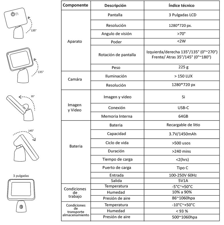 vision HD, Captura foto y vídeo, 8gb de memoria interna. 180° de rotación